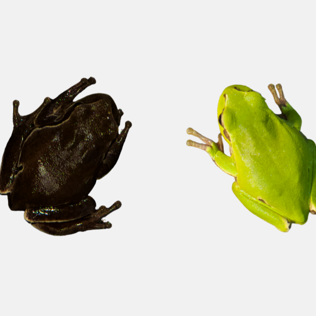The species typically has a bright green dorsal color. However, close to the site of the reactor explosion, the frogs discovered were black.