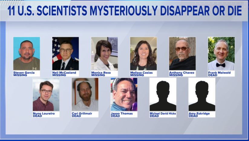 In fact, in the last two years, as many as 11 US scientists, tied to sensitive aerospace and nuclear research, have either been killed or disappeared in thin air.