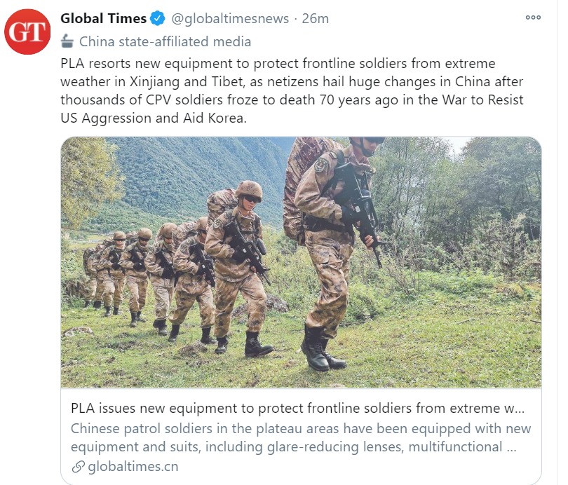 With China issuing new equipment to protect frontline PLA soldiers from extreme weather in Xinjiang and Tibet, the Chinese netizens are drawing comparisons to a brutal battle scenario in 1950, in which thousands of Chinese soldiers froze to death due to extreme cold.