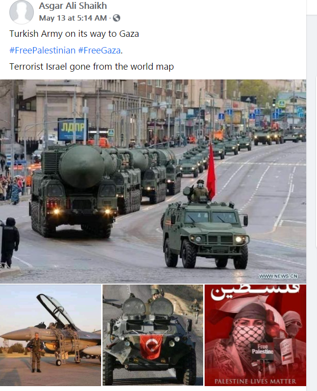 Some users of Facebook posted old pictures of missile launchers heading to Gaza, with others posting images of Turkish tanks and aircraft, supposedly ready to launch an assault.