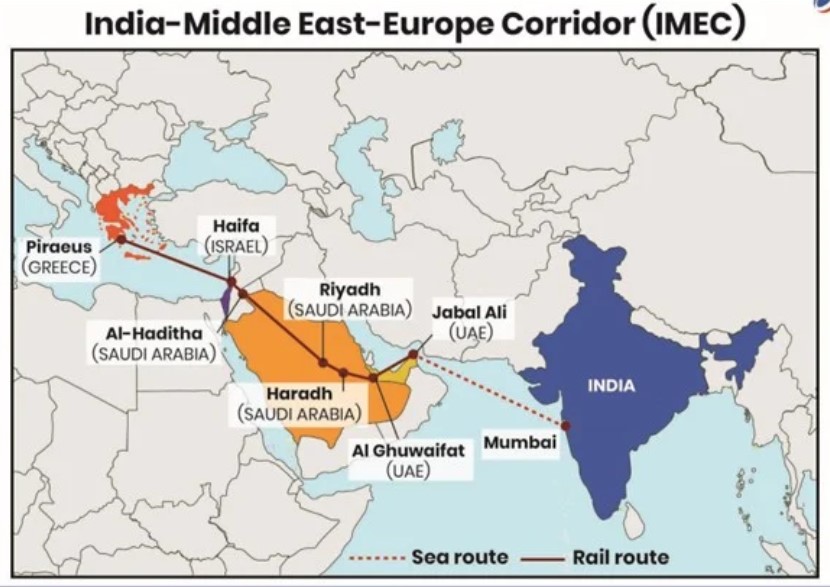 Simultaneously, India is also working on the India-Middle East-Europe Corridor (IMEC). The corridor is a proposed route from India to Europe through the United Arab Emirates, Saudi Arabia, Israel, and Greece.