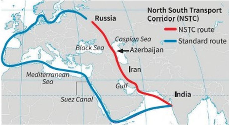 India is working on an Asia-Europe trade route under the International North-South Transport Corridor (INSTC). It is a 7,200-km, multi-modal network connecting India with Central Asia, Russia, and Europe via Iran. By combining sea, rail, and road routes, it aims to reduce transit time and costs by approximately 30% compared to traditional routes.