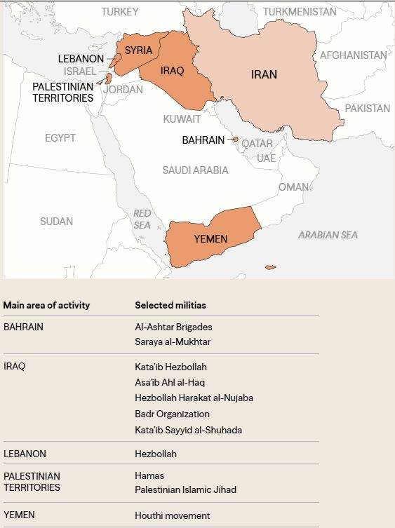 The Quds force organizes and supports various non-state actors, such as Hezbollah, Palestinian Islamic Jehad, Hamas, Houthis, and others, which provide Iran strategic depth and influence across the Middle Eastern countries.